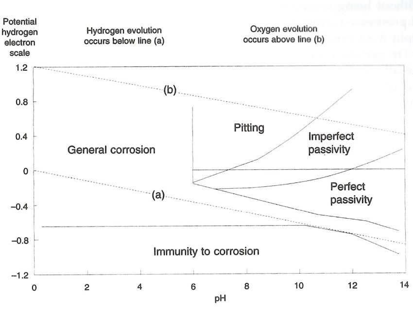 Crevice and pitting corrosion, which progresses 10-100 times faster than normal corrosion, is mainly due to the fact that the iron dissolved in water in the oxygen-free environments under the passive film layer or any coating, attracts the chloride ions by charging positive electricity and the HCl forms inside, lowering environments pH down to 2, turning it into a strong acid solution.