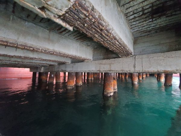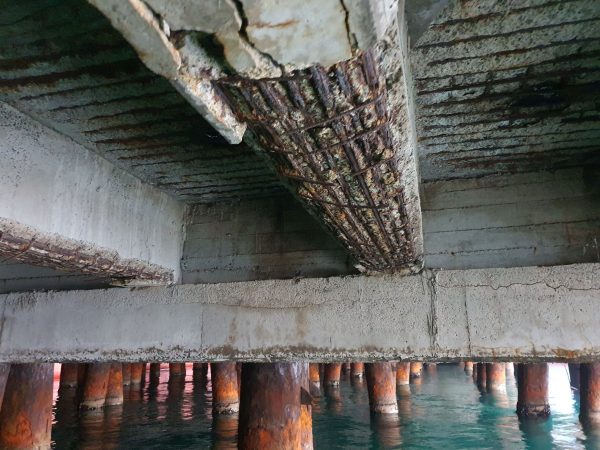 Klor inhibitörleri ve rust konverterleri kullanılarak betonarmede kalıcı korozyon onarımları yapılmakta ve donatı kaybının çok olduğu bölgelerde karbon elyaf ve plakalar kullanarak güçlendirme yapılmaktadır.