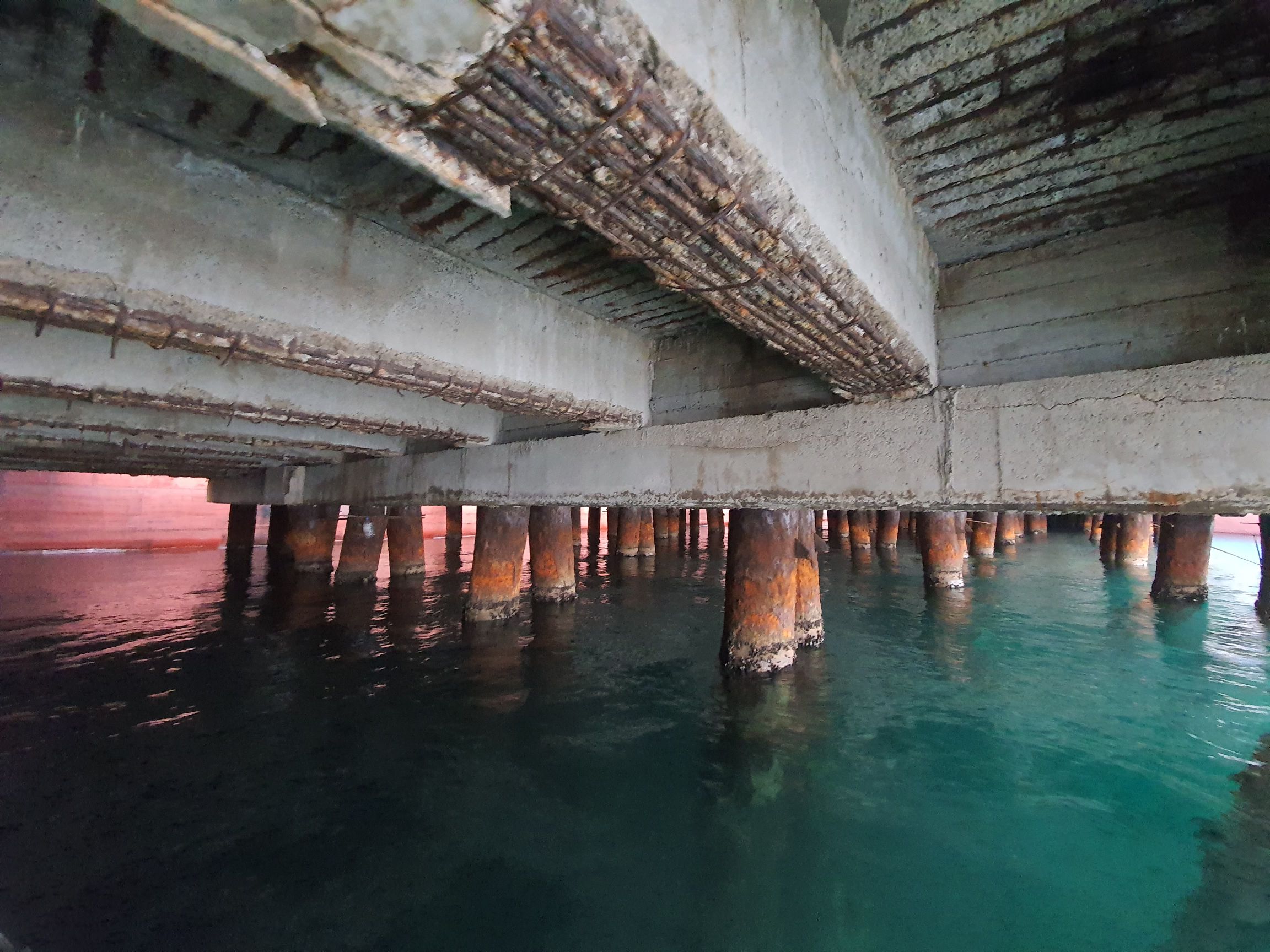 Klor inhibitörleri ve rust konverterleri kullanılarak betonarmede kalıcı korozyon onarımları yapılmakta ve donatı kaybının çok olduğu bölgelerde karbon elyaf ve plakalar kullanarak güçlendirme yapılmaktadır.